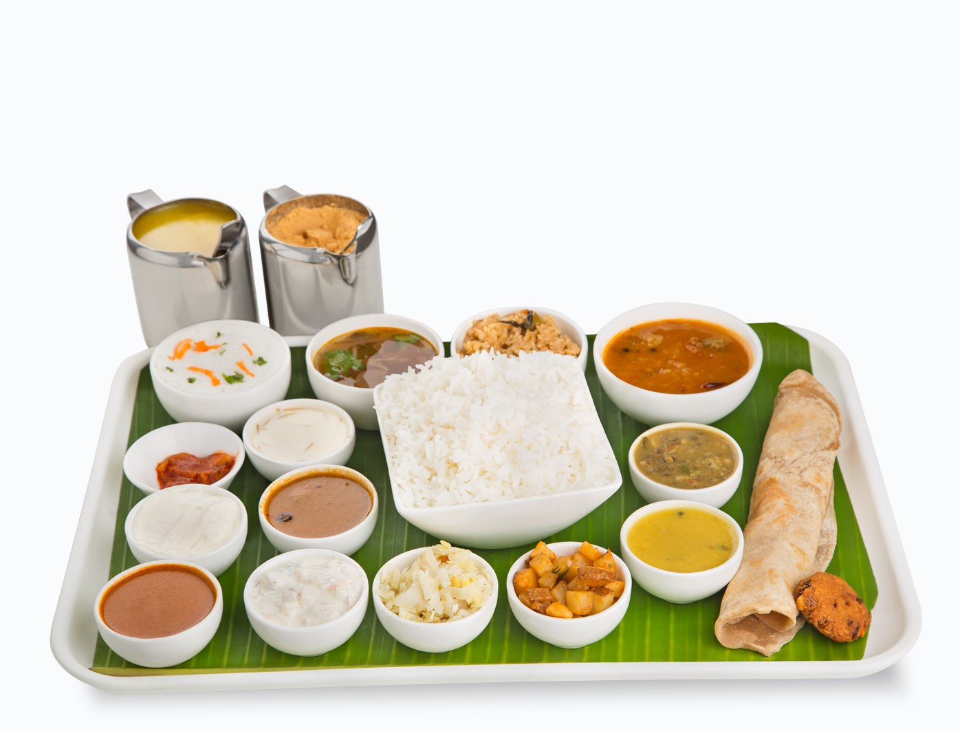 Rice, Non-Veg Plain Gravy 2, Rasam, Poriyal 2, Curd, Appalam