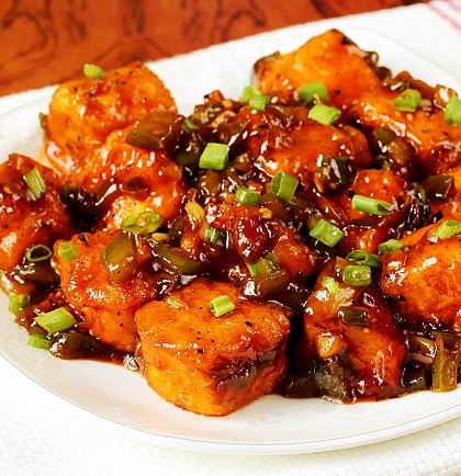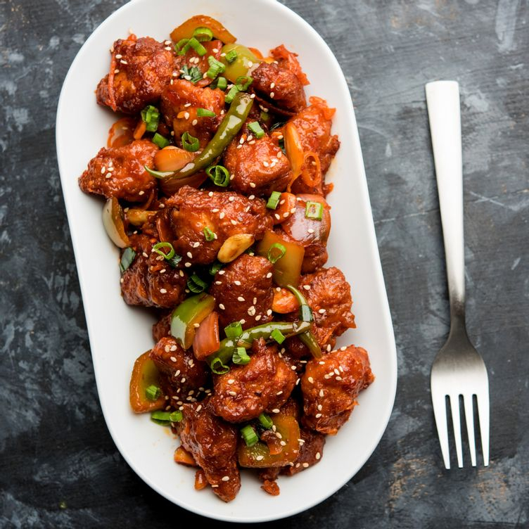 Fried chicken marinated and sauteed in manchurian gravy rich with chilli and...